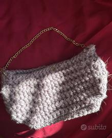 Vendo elegante borsa in lana color glicine, realizzata a mano all’uncinetto con cura e passione.