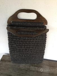Borsa in lana color marrone sfumato lavorata ad uncinetto Made in Italy