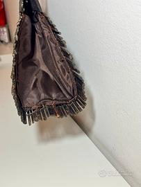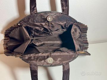 Borsa in canne di legno di artigianato toscano, con fodera in raso, manici lunghi per portala anche a spalla. In ottime condizioni e leggera. Dimensioni:
