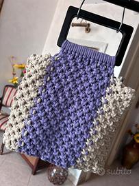 Realizzata interamente a mano con cordino 3 mm di alta qualità, in una delicata combinazione lilla polvere + beige per un effetto color block moderno e chic.