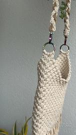 Realizzata interamente a mano con corda in cotone naturale, questa borsa unisce semplicità e carattere boho.