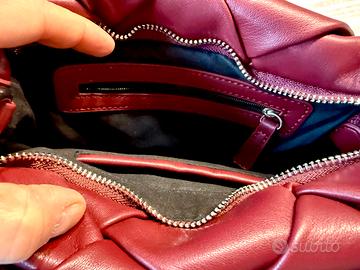 Borsa in morbidissima ecopelle NUMERO 22, attualissimo color bordeaux, fodera interna nera, taschina interna con cerniera, estremamente versatile in quanto è possibile indossarla al braccio oppure a tracolla.