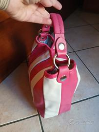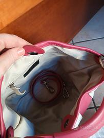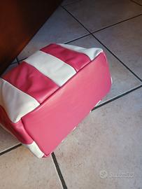 Sacca morbidissima e leggera. A righe fucsia e bianche. Con tracolla