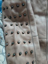 in pelle artigianale morbidissima. dimensioni 37 x 28 x 10. mai usata. a mano o con tracolla. borchie sul fondo.