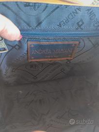 Elegante e raffinata borsa in pelle color cuoio firmata Andrea Mabiani, made in Italy.
