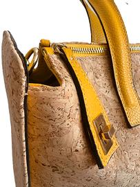 Borsa in vera pelle vitello martellato e vero sughero 100 % Made In Italy Accessori colore oro, nickel free Piedini sul fondo. Fodera in polyestere interna con taschino e scompartimento centrale Tracolla removibile e regolabile Sughero 100% italiano. Borsa perfetta per primavera/estate. Nuova con panno originale per conservarla. Accessori gioiello davanti con intrinseco di pelle a forma di cuore. Realizzato artigianalmente Capacità foglio A4, computer 13" Dimensioni: 36 x 28 x 11
