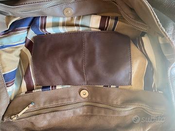 Vendo borsa a mano/spalla in pelle del marchio Artigiano Veneto. Perfetta per l’uso quotidiano o per il lavoro. Misure 45x31x15 Interno capiente e foderata con tessuto a righe, dotata di tasca interna con zip per organizzare gli oggetti piccoli.