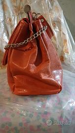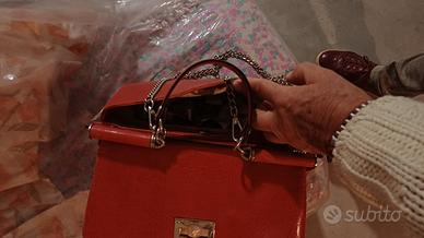 Borsa in pelle rossa con 2 ampie scompartimenti, con catena a tracolla e 2 maniglie fine serie