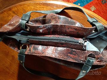 Borsa in pelle bicolore marrone e nero da portare sia a mano che a spalla Brand Genuine Leather misura cm50x33x15
