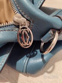 Vendo Borsa in pelle colore turchese scuro , marca Cartier usata pochissimo, presenta solo una macchia all'interno della fodera .