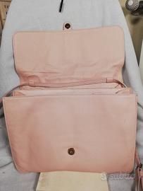 Borsa in nappa con tracolla removibile, interno in tessuto con due scomparti, misure cm 27x22, rosa cipria, presente piccola macchia in zona non visibile, chiusura magnetica