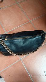 Vendo borsa in vera pelle colore nero, con catena dorata, elegante e versatile, adatta sia al giorno che alla sera.
