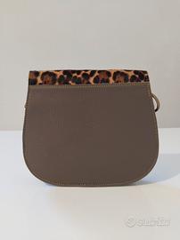 Una bellissima borsetta in pelle con dettaglio animalier, tre scomparti e chiusura magnetica. Questa borsa è rifinita con dettagli in oro opaco ed è dotata di tracolla staccabile e regolabile.