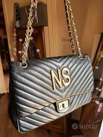 Vendo borsa in pelle nera super capiente personalizzata con iniziali “NS” e suo portafoglio abbinato. Vendo per scarso utilizzo, utilizzata pochissimo.
