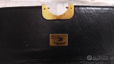 Borsa in pelle di coccodrillo nera marcata Serafino Fiaschi