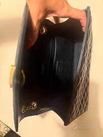 INTRAMONTABILE BORSA CON PATTA IN PELLE GRAIN DE POUDRE CON IMPUNTURE TRAPUNTATE CHEVRON E A ROMBI.