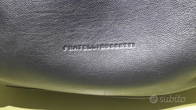 Vendo una borsa in pelle F.lli Rossetti, colore esterno blu scuro, interno borsa in pelle color bianco ghiaccio. La borsa e' dotata di due tasche interne in pelle entrambe con chiusura cerniera .