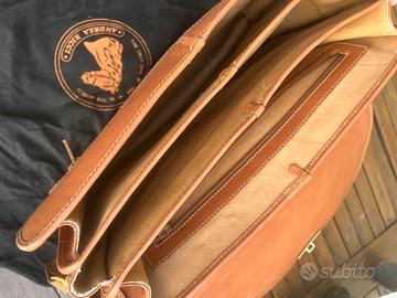 Borsa in vera pelle “Andrea Ricci”, ricevuta in regalo ma mai usata, 35x25, con 4 comparti interni (di cui uno con zip) ed uno esterno, con tracolla e sacca originale.