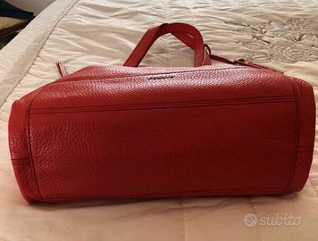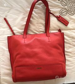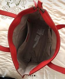 Borsa da donna Fossil, originale, in pelle, mai usata, colore Corallo, doppio manico, interno in tessuto beige, misure: L38xH31xP15