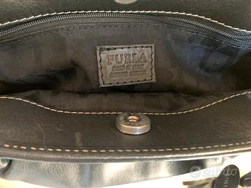 Borsa a mano, in pelle nera usata pochissimo, marca Furla originale, tasca interna con cerniera, chiusura con bottone, completa di sacchetta