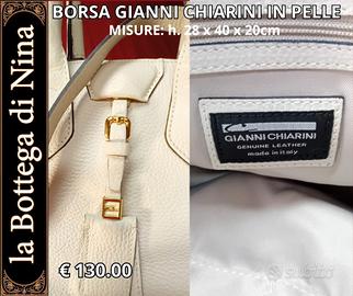 Splendida borsa Gianni Chiarini in vera pelle martellata color bianco avorio, Made in Italy. Un accessorio elegante e versatile, perfetto per ogni occasione, dal lavoro al weekend. Misure in foto La borsa presenta una struttura strutturata e capiente, con doppi manici rigidi e tracolla regolabile e removibile, ideale per essere portata a mano o a spalla.
