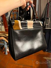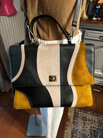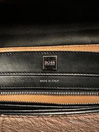 Magnifica borsa in pelle di vitello BOSS-Hugo Boss, decorata con Velluto. Dimensione media, adatta per varie occasioni, casual & chic. Si puo usare a mano oppure a con una sua tracolla regolabile. Presenta un graffio sul lato esterno (come una venatura).
