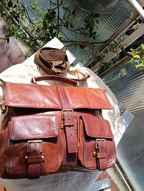 Borsa in pelle marrone multi tasche