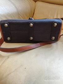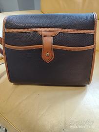 Borsa in pelle a tracolla vintage, di colore marrone, dimensioni lunghezza cm 25, altezza cm 19 e profondità cm 10. Borsa per tutte le stagioni con interno scamosciato. Etichetta interna: Dooney & Bourke, Inc. Made in USA. La borsa è corredata con il ciondolo "Dooney & Bourke All Weather Leather".