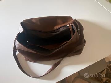 Vendo praticissima borsa a mano / tracolla, chiusura con gancio, interno colore marrone corredata da tasche interne misure