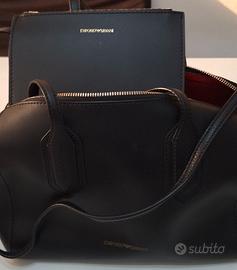 Borsa in pelle nera di Emporio Armani con pochette inclusa come da foto.