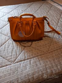 Borsa in pelle, artigianale, colore giallo, ocra, mai usata, nuova con cartellino, misura 35x26