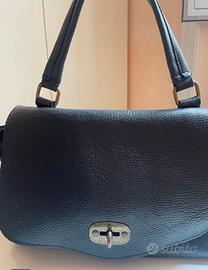 Morbidissima borsa in pelle nera, ben rifinita all’interno con dettagli in ottone. Versatile e pratica con manico e tracolla
