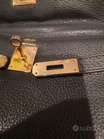vendo come da foto borsa in pelle nera ,simil Hermes usata,con tracolla .guardare bene le foto dell interno .prezzo 250 euro