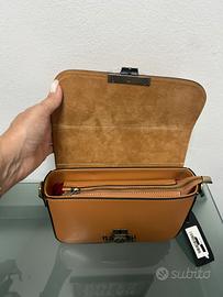 Borsa in pelle nuova color cuoio, con tracolla, mai usata, prodotta in Italia, misure cm 23x16x7