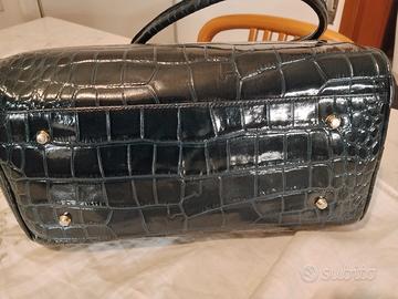 vendo borsa in pelle bauletto fatta fare in pelletteria colore blu effetto coccodrillo è larga cm33..alta cm 22 e la base è cm20 a€40