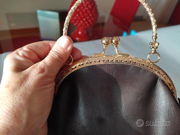 borsa in vera pelle nappata, con apertura clic clac, e catena per tracolla.