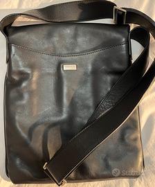 Elegante borsa in pelle porta tablet, con tracolla regolabile, colore nero, brand: Boggi