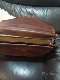 borsa in pelle da uomo portadocumenti, vari scomparti, della pelletteria Forlivese; vintage, anni '70. Segni di usura.