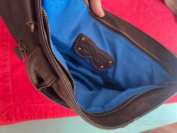 Borsa in pelle originale Police in morbida nappa di pelle marrone con manico e tracolla. Interno in tessuto bluette. In ottime condizioni.