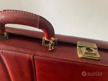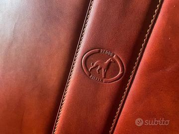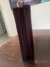 Borsa in pelle primo fiore color rosso brandy con scomparti interni.