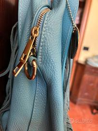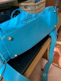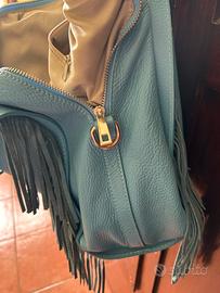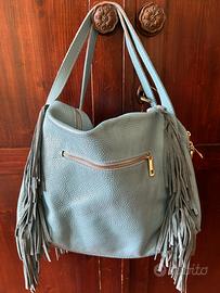 Borsa in cuoio fiorentino con frange. Tracolla. Di ottima qualità e usata poco Made’ Firenze Un piccolo segno di spelatura nell’angolo inferiore sx