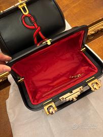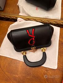 Borsa in pelle originale nera interni rossi con tracolla. Nuova con cartellino