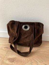 Borsa in pelle scamosciata marrone, con maniglia per tracolla