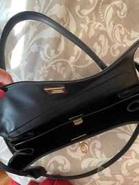 Design moderno ed essenziale, ispirato alla Rodeo di Balenciaga, con una struttura definita ma allo stesso tempo morbida ed elegante. Marca Marie Louise Bags, modello Zabriella. Realizzata in pelle di vitello liscia, resistente e piacevole al tatto, oltre che facile da mantenere. Dimensioni: 27 × 18,5 × 9 cm, perfette per un utilizzo quotidiano. Dotata di manici comodi e versatile nella portabilità: può essere indossata a mano, a spalla o a tracolla. Prezzo originale 159.00EUR Mai utilizzata, proviene da ambiente non fumatori.