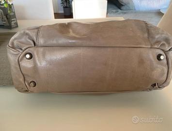 Borsa a spalla in pelle morbidissima Sportmax grigio chiaro, misure 37 x 30 x 15, molto capiente, usata con qualche segno di usura, ma in buono stato
