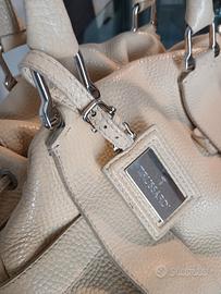 Vendo borsa in pelle color panna Trussardi con sacca. praticamente nuova salvo piccolo segno di penna sotto il taschino interno. Vendo a 190 euro.
