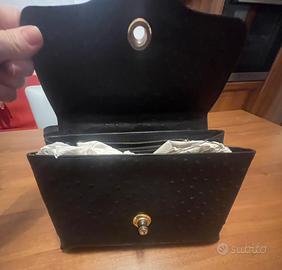 Borsa in pelle, colore nero, vintage, borsetta a mano con maniglia lunga complessivamente cm 35,5, misure cm 24x cm 17,5, larghezza cm 8 circa, solo con piccoli segni del tempo negli angoli (ma non visibili). Svendo