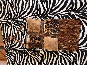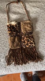 Cendo borsa in vera pelliccia con intarsi in pitone