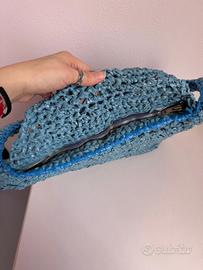 Borsa fatta a mano in plastica. Fatta utilizzando sacchi della spazzatura nuovi. Interno in tessuto e chiusura con zip. Cm 40x30 e molto capiente. Mai utilizzata