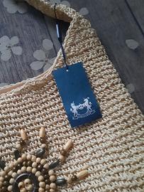 borsa in raffia foderata nuova con etichetta Enrico Corti 30per 34per10